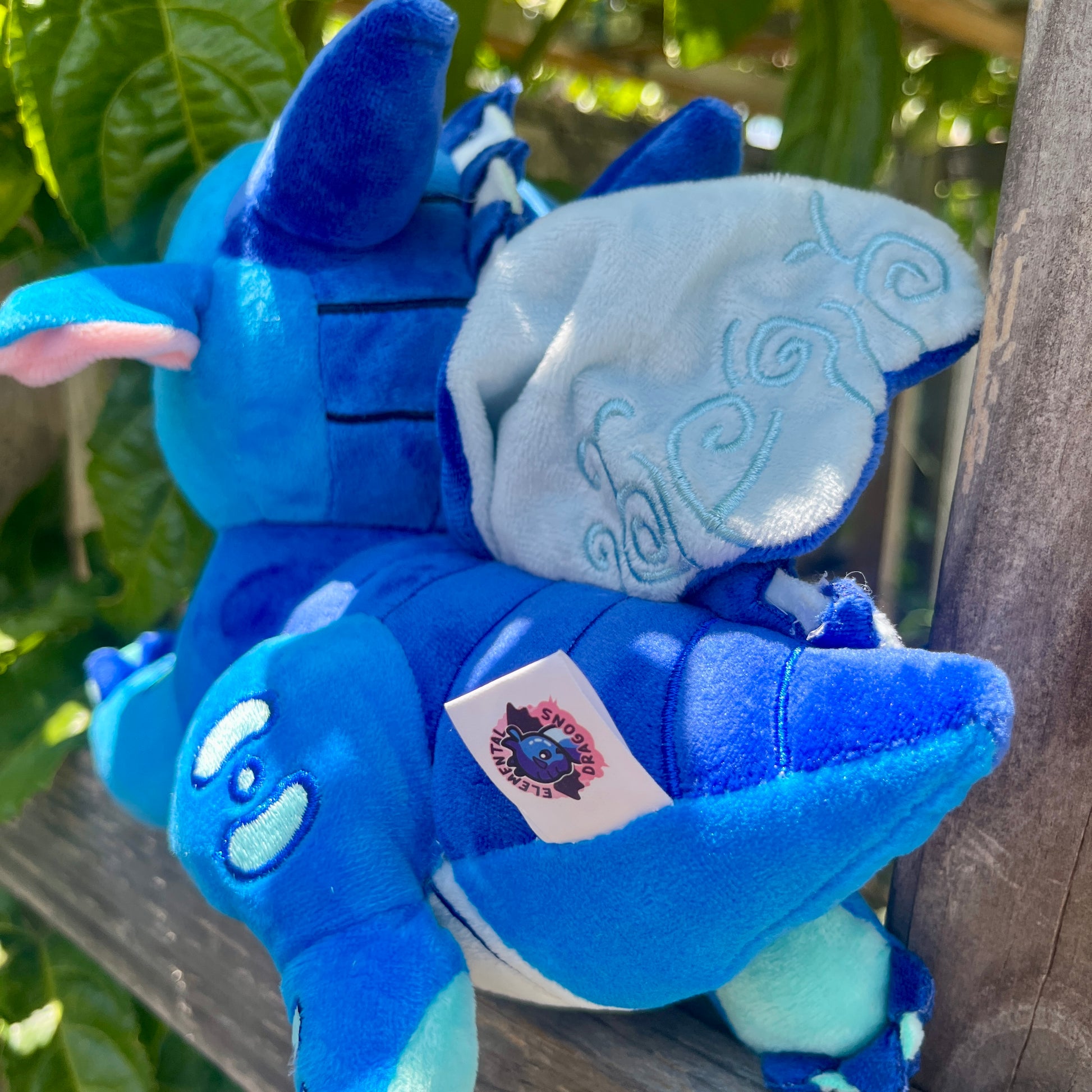 Torrent the sea dragon has arrived! She's a soft combo of fabric and embroidery, (Of which some glows in the dark-) excited to come home. She's 10" long in length!